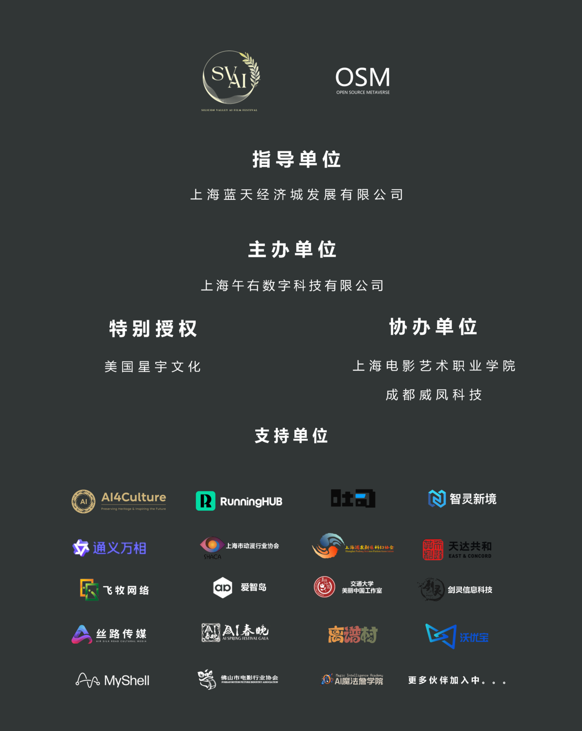 本次开源电影将与硅谷 AI 电影节展开深度联动。推出”开源电影+硅谷AI电影节“活动。硅谷作为全球科技创新的前沿阵地,在 AI 技术应用于电影创作方面积累了丰富经验与前沿成果。通过与硅谷 AI 电影节联动,我们期望实现资源共享、优势互补,将国际先进的 AI 电影技术与创意引入国内,同时向世界展示中国电影人的创新活力与艺术风采,促进中外电影文化的交流与合作,共同推动全球电影产业在 AI 时代的创新发展。